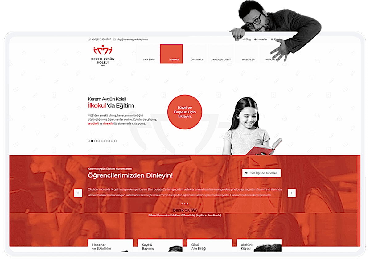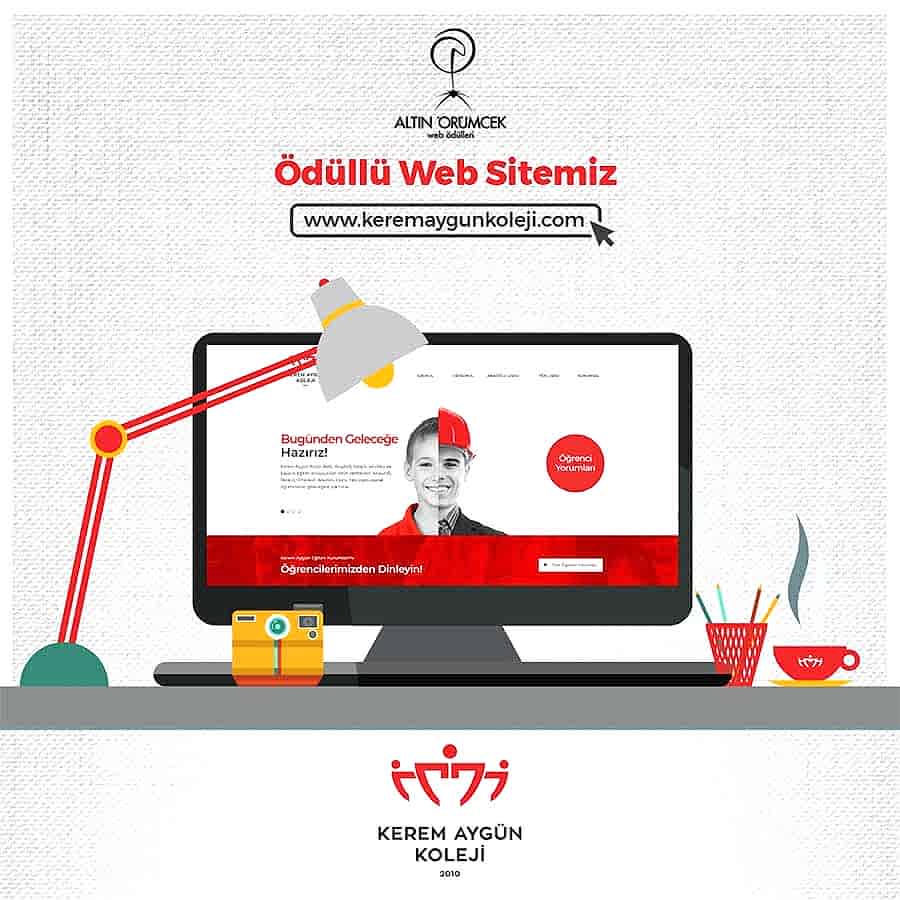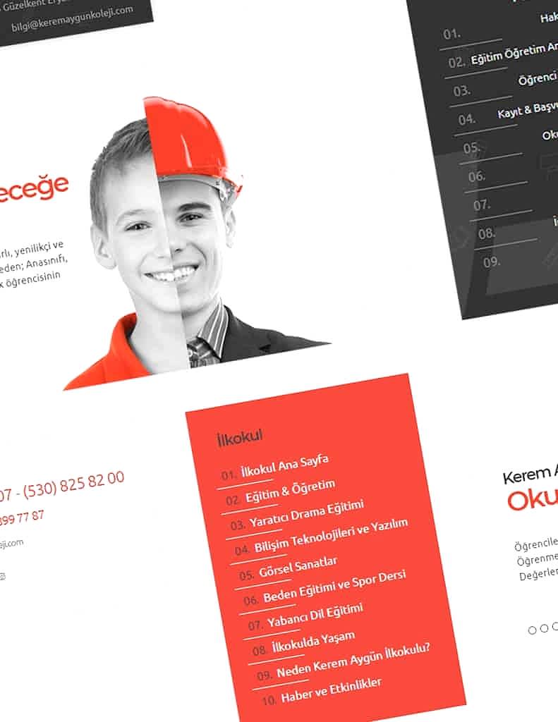 Kerem Aygün Kolejinin “çağımız gerekliliklerine uygun” eğitim ilkesi, kolejin başlıca iletişim ortamı olan web sitesine de taşınmış, özenli bir çalışma sonucunda oluşturulan tasarım, göze güzel görünen bir görsellik, kullanışlılık ve erişilebilirlik hedefleri doğrultusunda tasarlanmıştır.